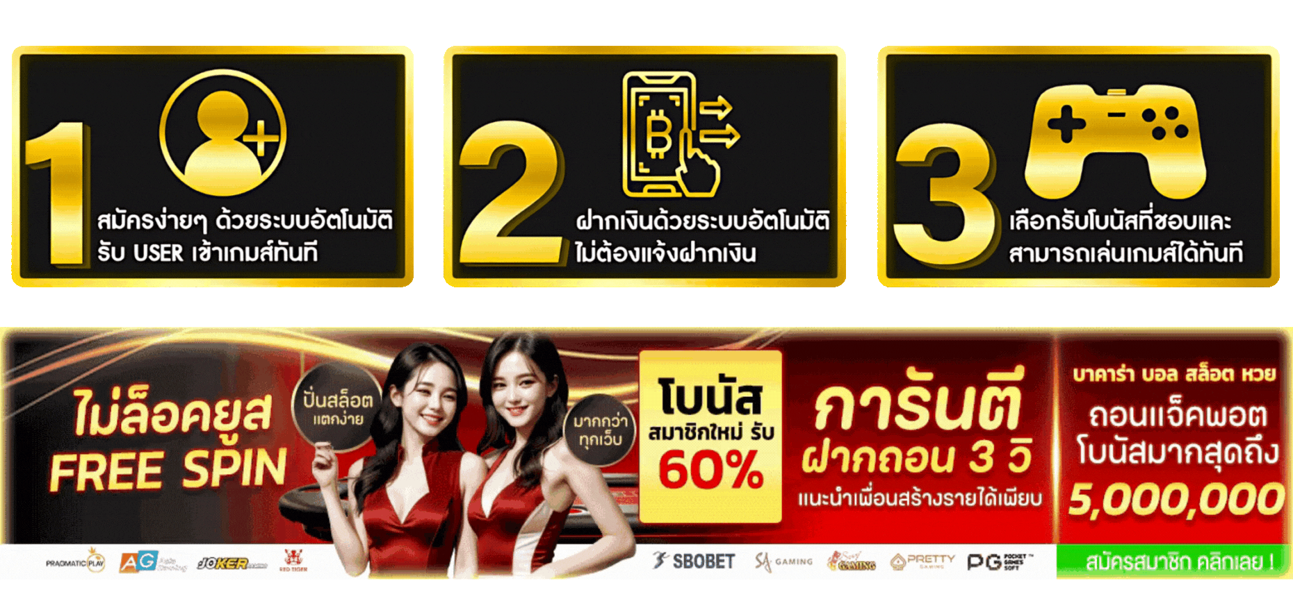 ตอบ : - แจกเครดิตฟรีสำหรับสมาชิกใหม่ โบนัสฝากแรก 100% โบนัสคืนยอดเสีย และกิจกรรมแจกรางวัลพิเศษประจำเดือน